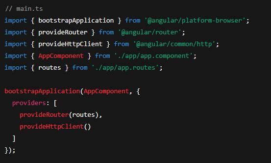 )-both without NgModules. (angular.dev) - Bootstrap is simpler: You bootstrap a standalone root component with
