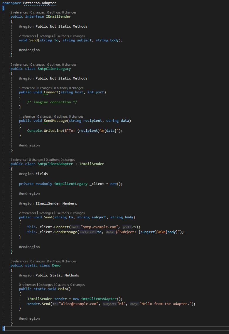 Design patterns aren’t magic; they’re named, time-tested shapes that fit recurring problems-especially handy when you want a common vocabulary across a team. Use what serves the design; ignore what doesn’t. A few patterns translate cleanly into idiomatic C#.