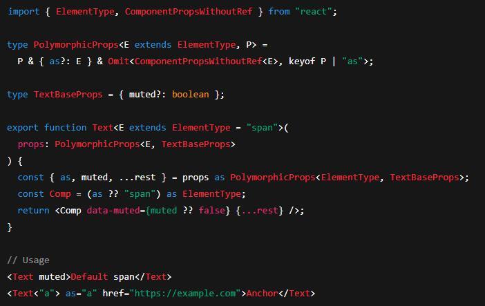 - ComponentPropsWithRef<T> / ComponentPropsWithoutRef<T> – include/exclude ref.