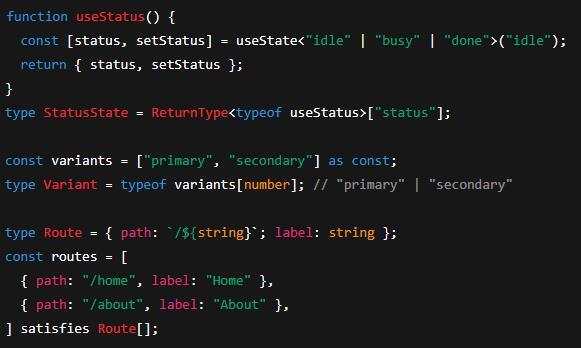 Inference is your friend-except when it isn’t. If you start with null or you need a literal union, add a generic.
