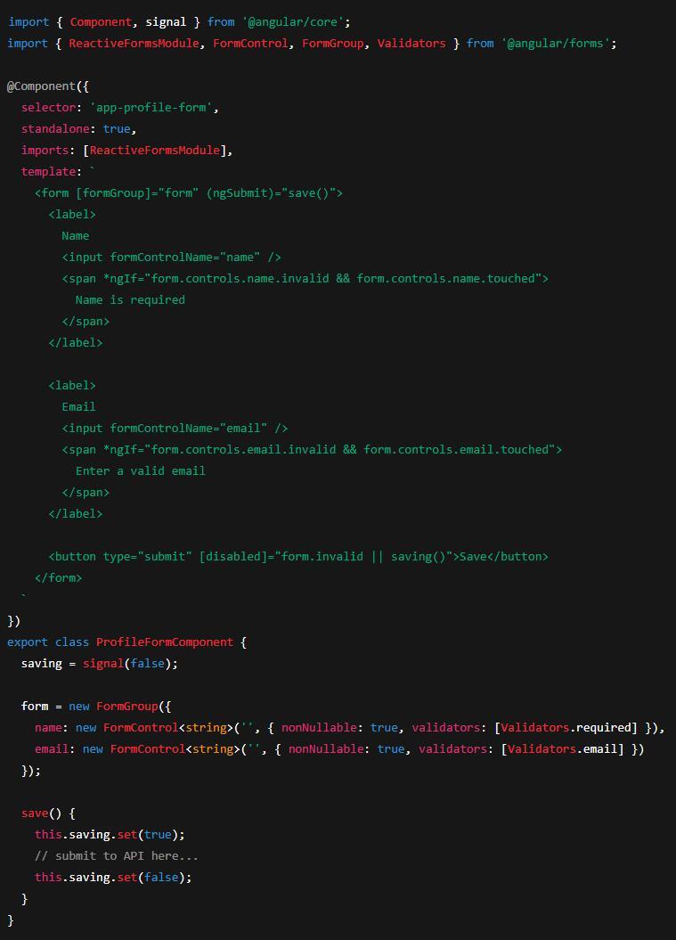 (Angular v20 is the current active release at time of writing; examples use its recommended patterns.) (angular.dev)