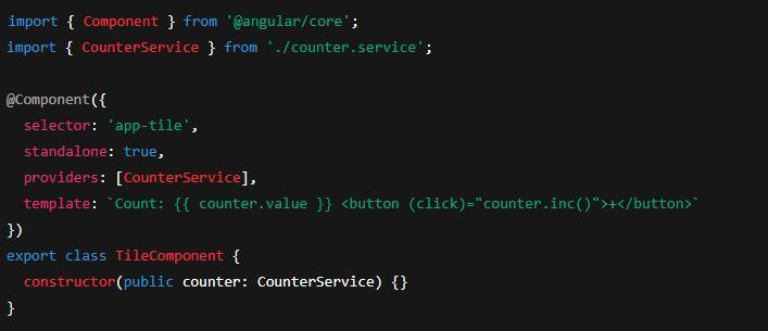 when unused. You can also provide at component level for per-component instances. The inject()