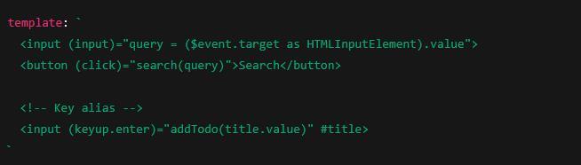 attributes for cases without a matching property (e.g., many ARIA attributes). (angular.dev) - Event binding uses the browser’s event model;